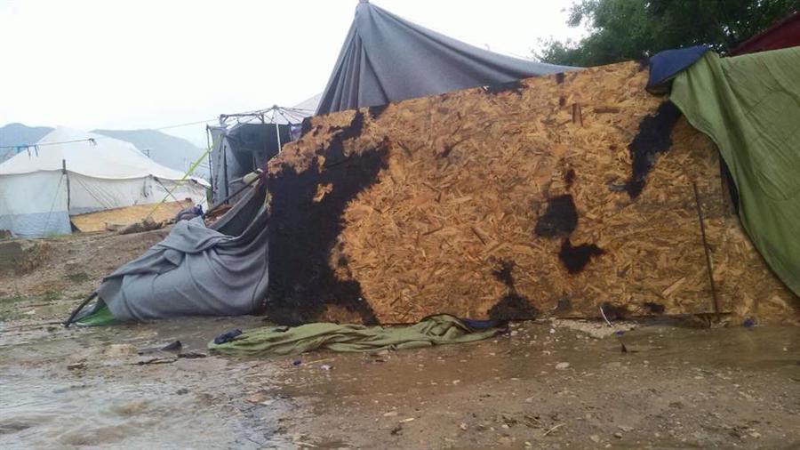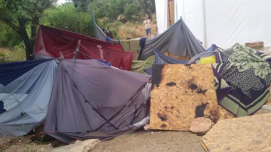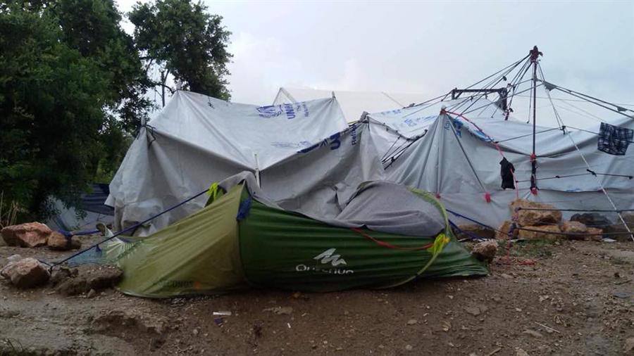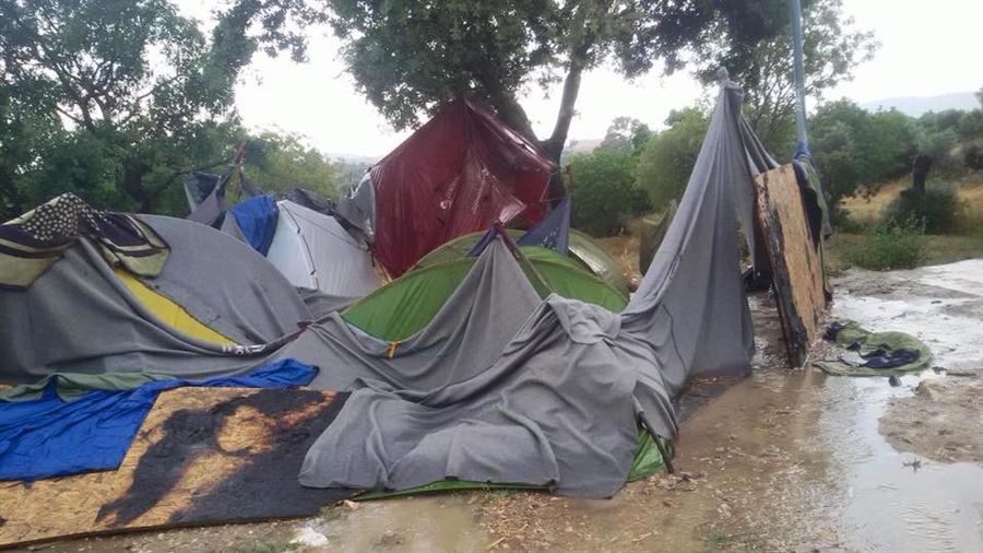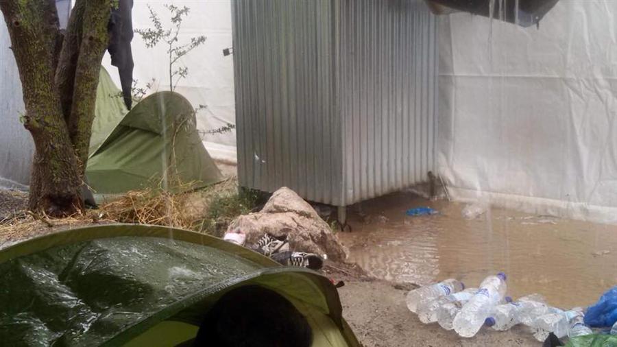 غرقت الأمطار التي هطلت على اليونان يوم 16 حزيران/ يونيو الجاري ، خيام لاجئين فلسطينيين سوريين وسوريين في كمب فيال بجزيرة خيوس اليونانية بالمياه، وأفاد مراسلنا من داخل المخيم إن المياه داهمت خيام المقيمين في كمب فيال، ما أجبرهم على مغادرة خيامهم والانتقال للنوم في العراء. موضحاً أن المياه أغرقت الخيام وما بداخلها ما يشكل من خطر على صحة الأطفال والنساء وكبار السن نتيجة البرد القارس.