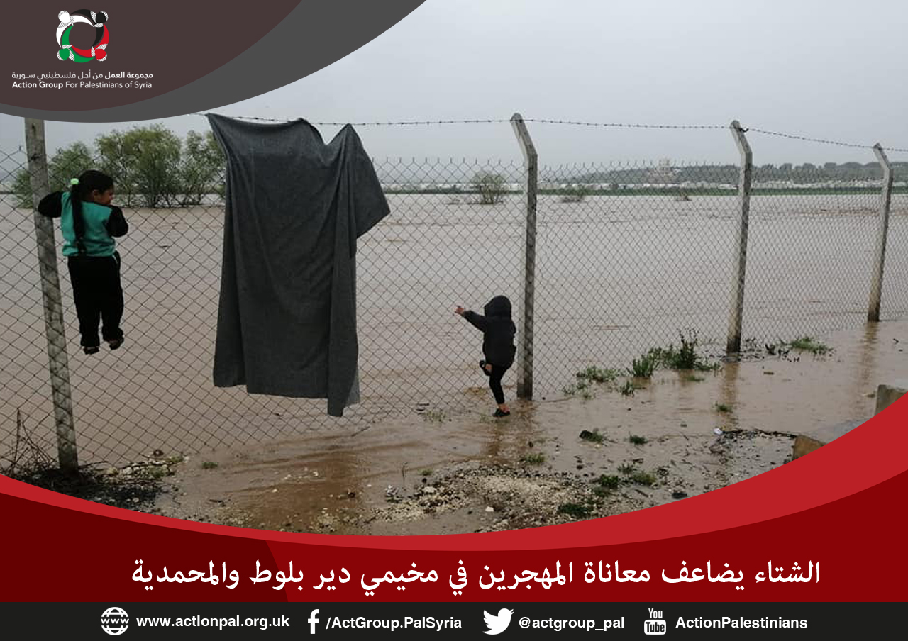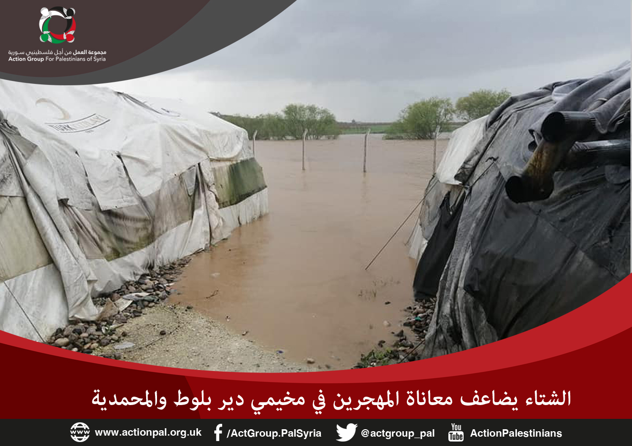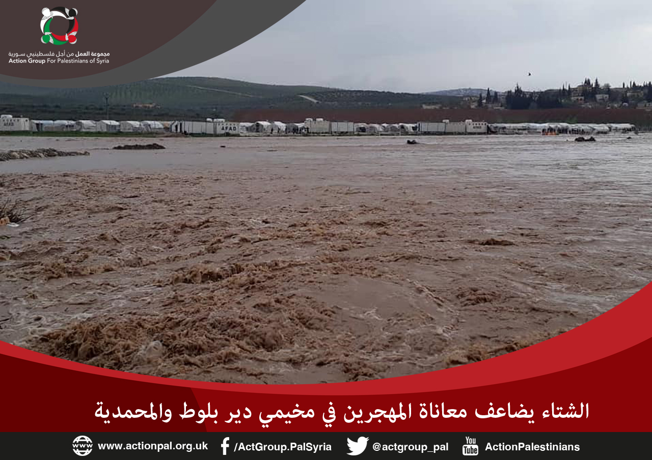 أغرقت مياه الأمطار خيام اللاجئين من فلسطينيين وسوريين بشمال سوريا حيث تسببت المياه في فيضان نهر عفرين ما أدى إلى غمر مساحة واسعة من مخيمي المهجرين في دير بلوط والمحمدية، الذين يعيشون أوضاعا مأساوية بسبب المنخفض الجوي الحاد الذي يضرب منطقة الشرق الأوسط.