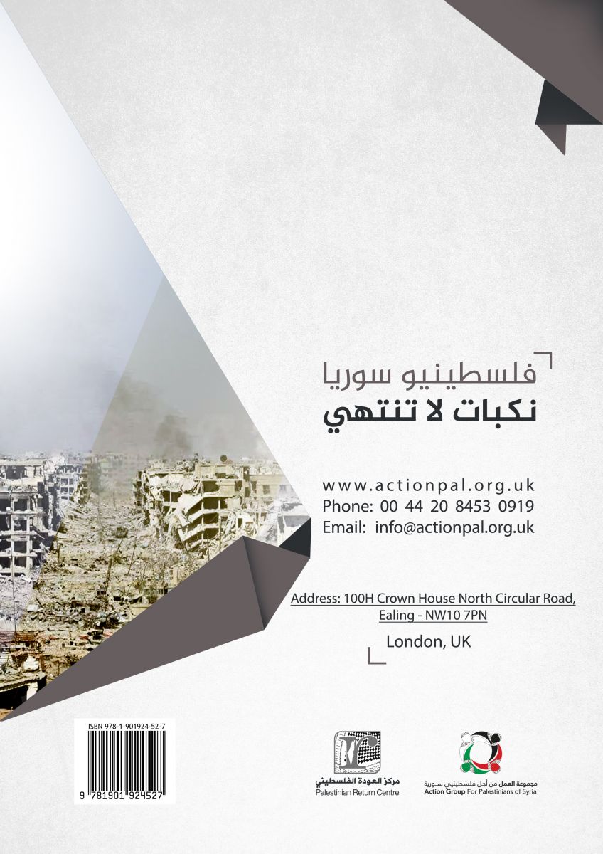 تحت عنوان "فلسطينيو سورية نكبات لا تنتهي" أصدر كلٌ من مجموعة العمل من أجل فلسطينيي سورية ومركز العودة الفلسطيني في لندن، التقرير التوثيقي السنوي الذي يرصد الأوضاع العامة لفلسطينيي سورية خلال عام 2018. منذ اندلاع الأزمة السورية في آذار- مارس /2011 ولغاية حزيران – يونيو 2019