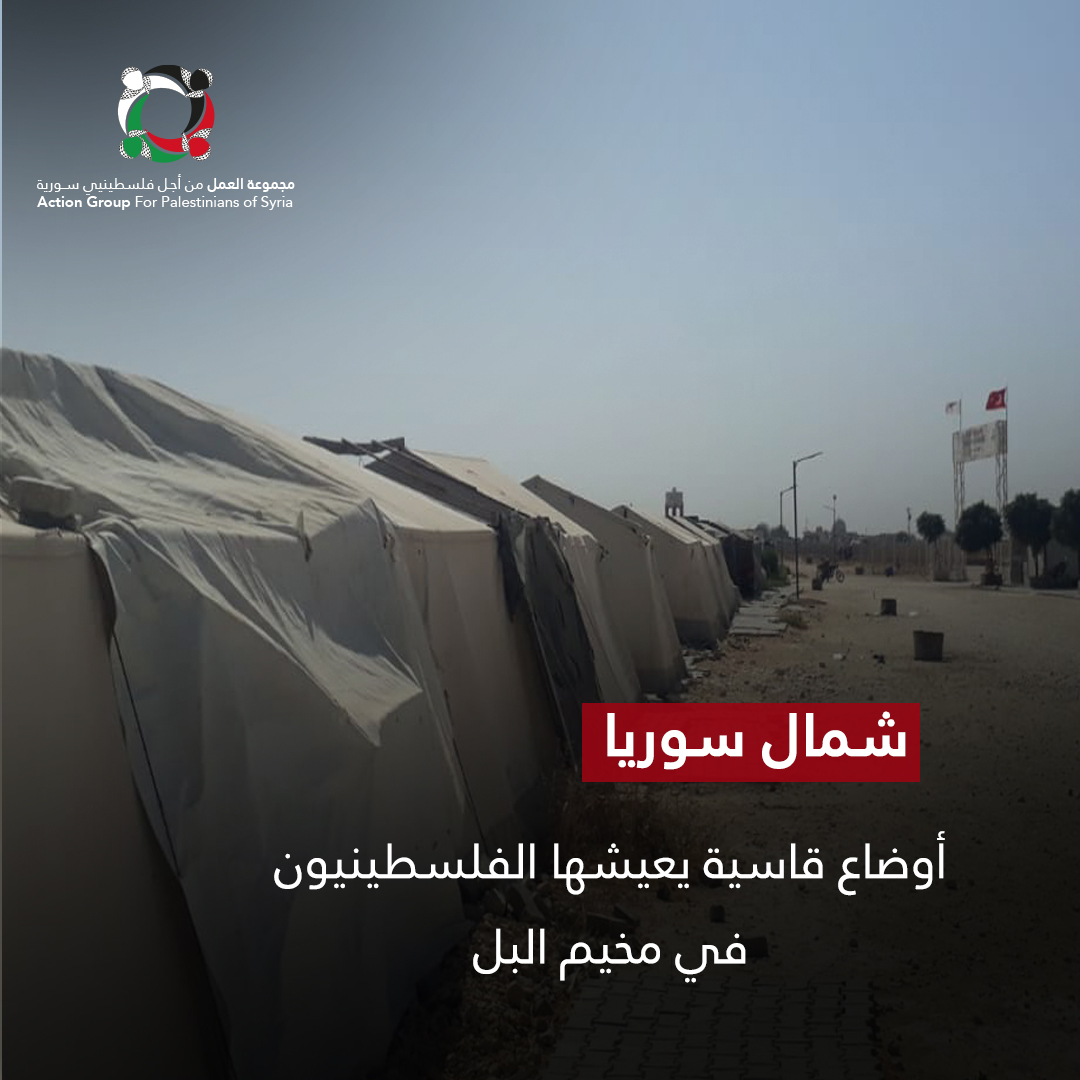 أوضاع إنسانية مؤلمة تواجهها 25 عائلة فلسطينية القاطنة في مخيم البل شمال سوريا، فيما تزداد معاناتهم سوء يوماً بعد يوم نتيجة أوضاعهم المعيشية والاقتصادية المزرية، وتردي الخدمات وانعدامِ وشح المساعدات الإنسانية التي تقدمُها المنظماتُ الإغاثية.