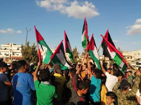 نظمت الفصائل الفلسطينية في مدينة درعا وبمشاركة أهالي المدينة ومخيم درعا مساء يوم الأحد 23 أيار/ مايو مسيرة ابتهاجاً بانتصار المقاومة الفلسطينية ونصرة لأهل فلسطين في القدس وغزة.
