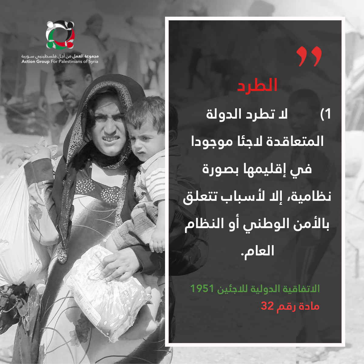 لا تطرد الدولة المتعاقدة لاجئا موجودا في إقليمها بصورة نظامية، إلا لأسباب تتعلق بالأمن الوطني أو النظام العام.