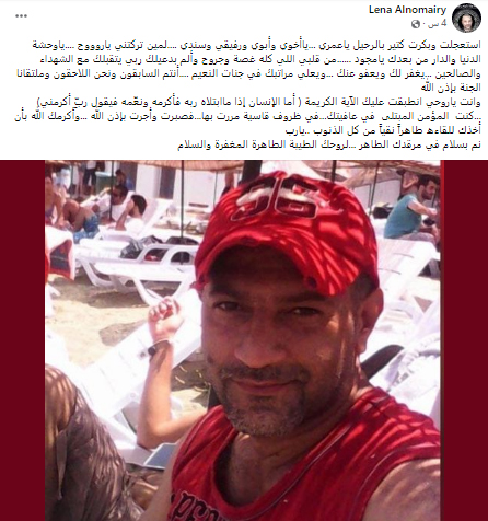 مستطردة وأنت يا روحي انطبقت عليك الآية الكريمة (أما الإنسان إذا ما ابتلاه ربه فأكرمه ونعّمه فيقول ربِّ أكرمني) كنت المؤمن المبتلى في عافيتك، في ظروف قاسية مررت بها، فصبرت وأجرت بإذن الله، وأكرمك الله بأن أخذك للقائه طاهراً نقياً من كل الذنوب.. يا رب نم بسلام في مرقدك الطاهر ...لروحك الطيبة الطاهرة المغفرة والسلام ".
