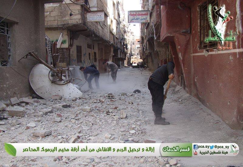 هيئة فلسطين الخيرية تقوم بإزالة الردم و الانقاض من مخيم اليرموك
