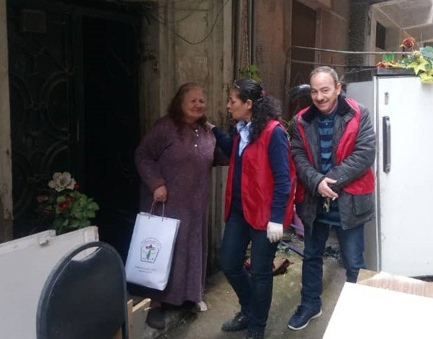 وزعت الدائرة السياسية لمنظمة التحرير الفلسطينية، بالتعاون مع اللجنة الشعبية لمخيم اليرموك، منظفات ومعقمات على الأهالي المتبقين في مخيم اليرموك.