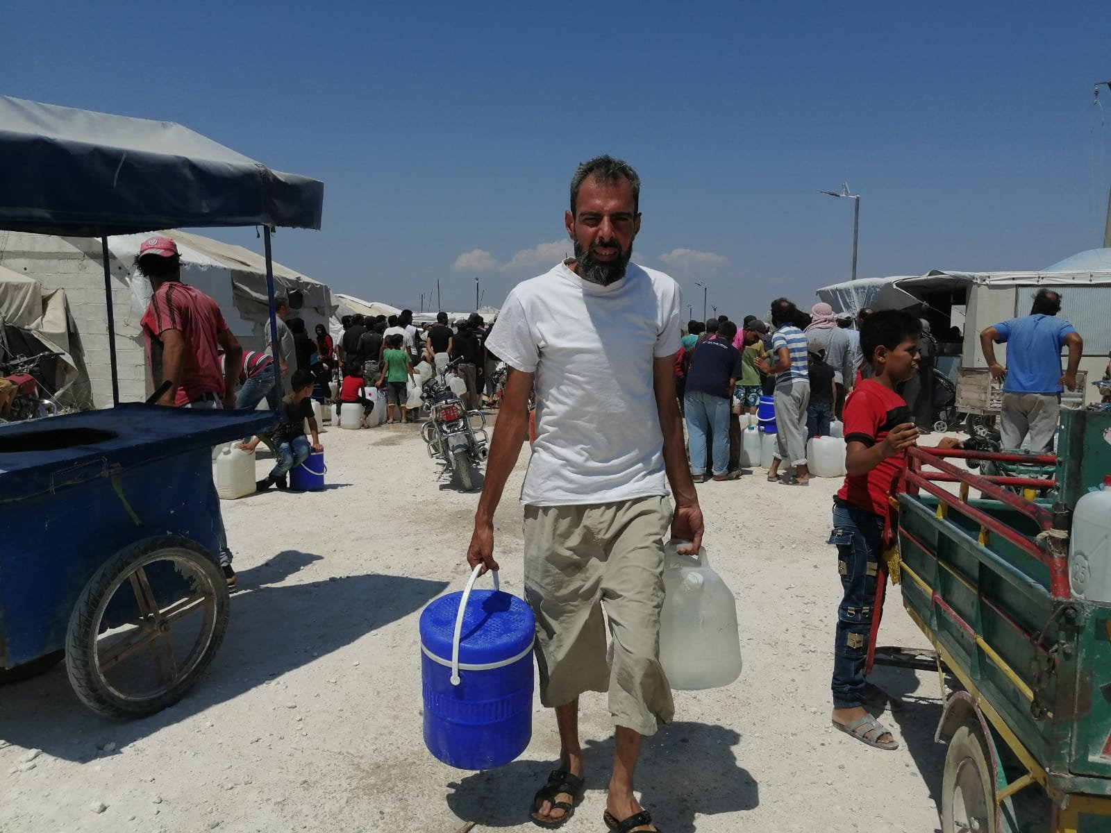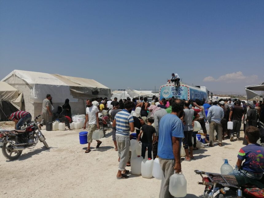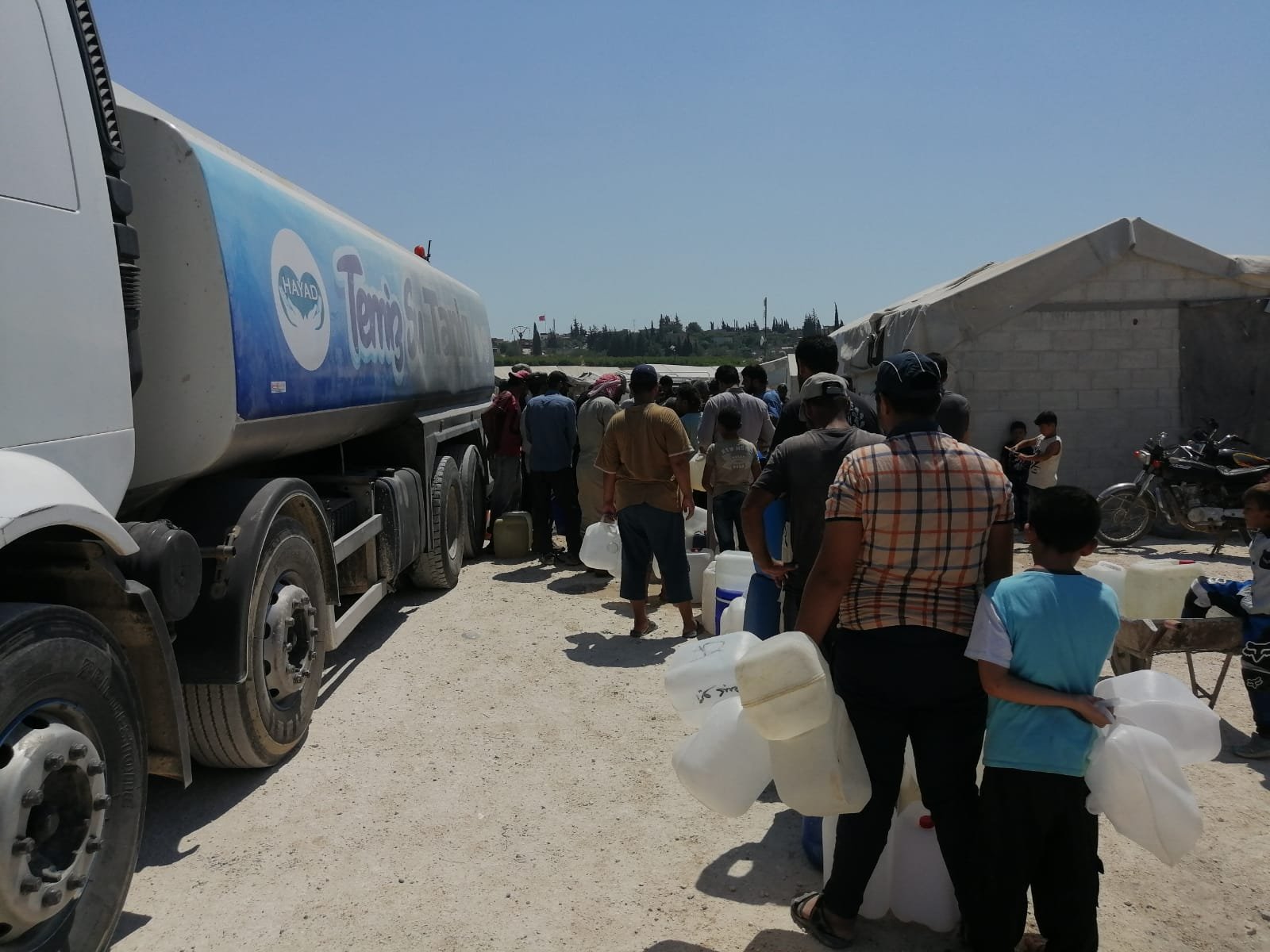 وقال مراسل مجموعة العمل إن الصهاريج تقوم بتعبئة المياه لقاطني المخيّم مرة واحدة في الأسبوع، مما دفع الأهالي إلى الانتظار لساعات على طوابير المياه للحصول على عدة ليترات لا تكفي حاجتهم.