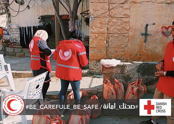 وزع الهلال الأحمر الفلسطيني في سوريا، اليوم الثلاثاء 22/12، معدات وقاية شخصية، ومعقمات، بالتعاون مع الصليب الدنماركي على أهالي مخيم خان الشيح للاجئين الفلسطينيين بريف دمشق، وذلك كمساعدة طارئة لمواجهة فيروس كورونا Covid-19.