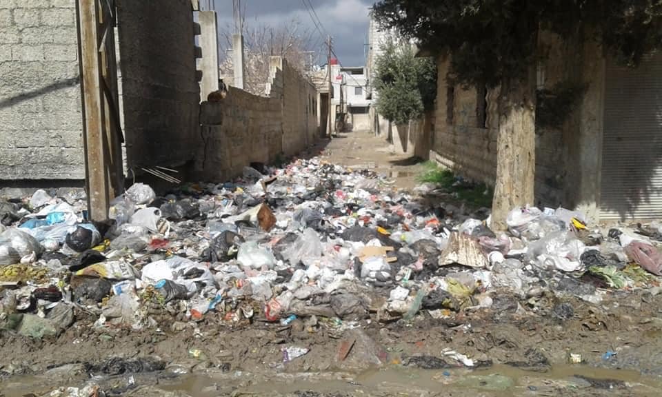 اشتكى عدد من أهالي مخيم الحسينية بريف دمشق، من تجمع المياه وتراكم القمامة في حارات وأزقة مخيهم، الأمر الذي بات يشكل معاناة حقيقية بالنسبة لهم بسبب انتشار الروائح الكريهة، وتحول اكوام القمامة إلى مرتع للقطط والكلاب الشاردة”.