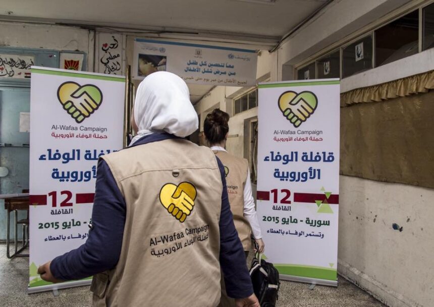 وصل أعضاء قافلة الوفاء الأوروبية ضمن قافلة الوفاء 12 للأراضي السورية يوم أمس، وذلك بغية الاستمرار في تقديم المساعدات الإغاثية لفلسطينيي سورية، بهدف التخفيف من الأعباء الاقتصادية، الناجمة عن انعكاس تجليات الحرب الدائرة في في سورية عليهم، إلى ذلك بدأ الوفد جولته بزيارة مركز ايواء “زينب الهلالية”، حيث قدم وجبات الطعام لأهالي مخيم اليرموك الذين استطاعوا الخروج منه، بعد اقتحام تنظيم الدولة الإسلامية “داعش” للمخيم بداية شهر نيسان – ابريل المنصرم.