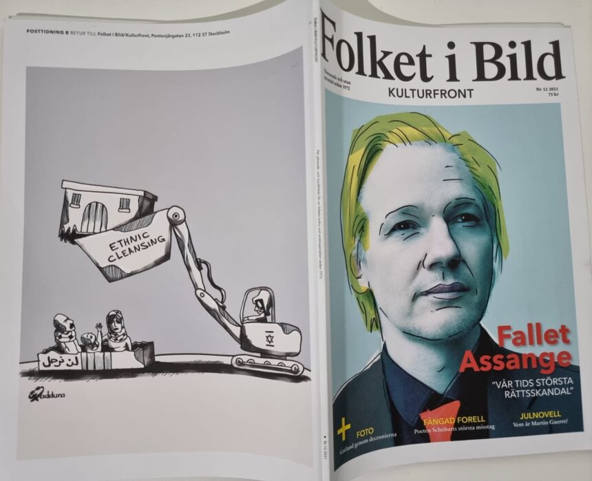 اختارت مجلة (Folket i Bild) السويدية وهي مجلة شهرية مستقلة تصدر من مدينة ستوكهولم رسماً كاريكاتيرياً للفنان الفلسطيني السوري أحمد قدورة غلافاً لها.