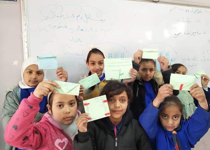 وجه أطفال مدرسة الحولة في مخيم خان دنون للاجئين الفلسطينيين بريف دمشق رسائل دعم وإسناد لمنكوبي الزلزال في مخيمات الشمال معبرين عن وقوفهم وتضامنهم مع الأهالي والأطفال الذين تضرروا جراء الزلزال الذي ضرب المنطقة.