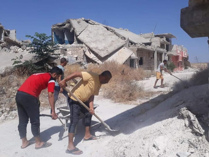 باب التطوع مفتوح في حملة “يداً بيد” لإزالة الأنقاض في مخيم حندرات