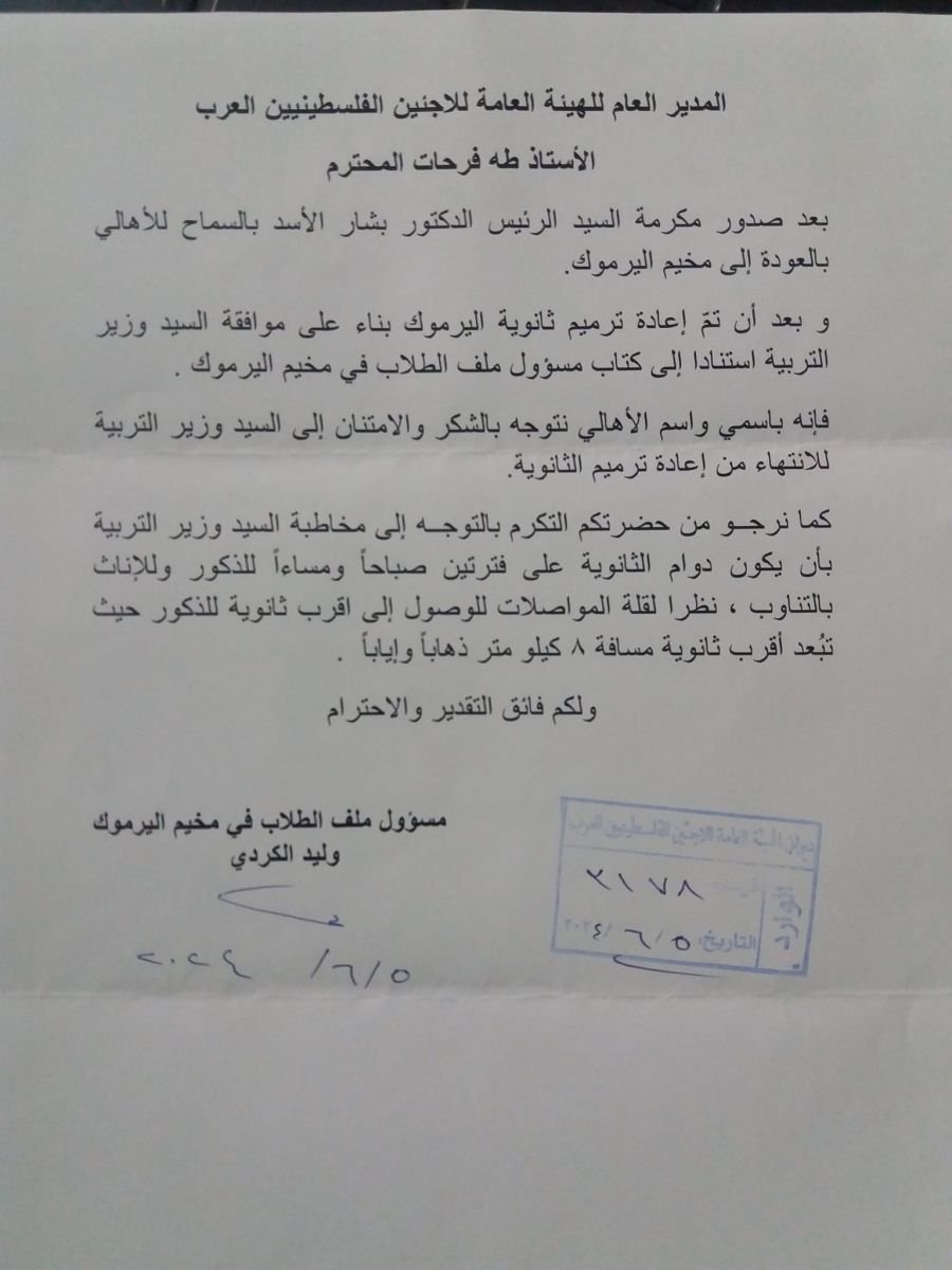 هذا القرار يأتي في إطار الجهود الرامية إلى التخفيف من معاناة طلبة مخيّم اليرموك وتحسين إمكانية وصولهم إلى التعليم.