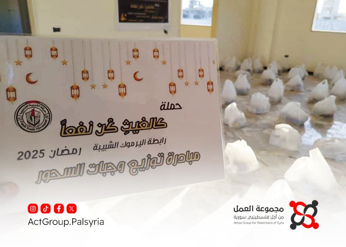وشملت الحملة، في مرحلتها الأولى، توزيع وجبات السحور على الأسر المحتاجة داخل المخيم، حيث قام المتطوعون بتجهيز وتوزيع عشرات السلل الغذائية.