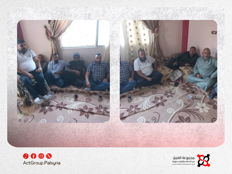 وجرى اللقاء في منزل عضو اللجنة مهند خميس في بلدة المزيريب، وتركزت المناقشات على عدد من القضايا التنظيمية والخدمية المتعلقة بأوضاع اللاجئين الفلسطينيين في محافظة درعا.