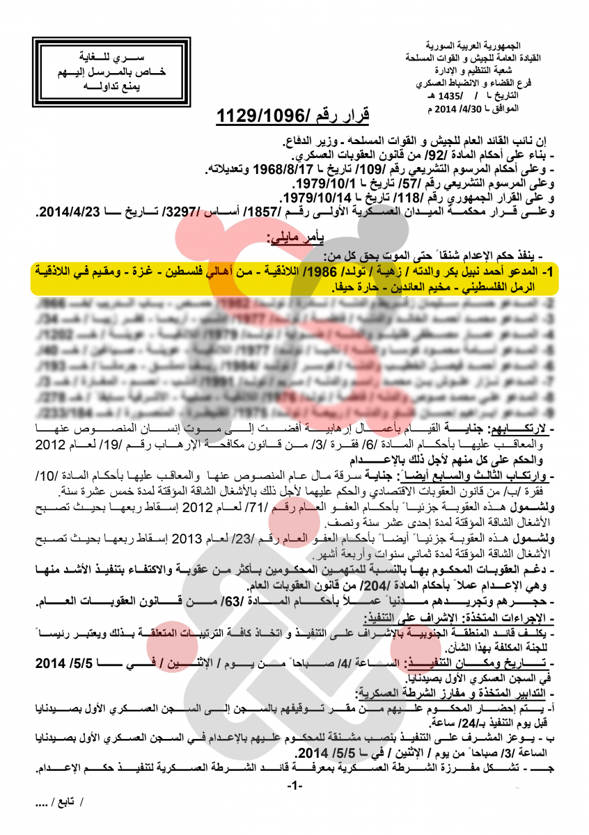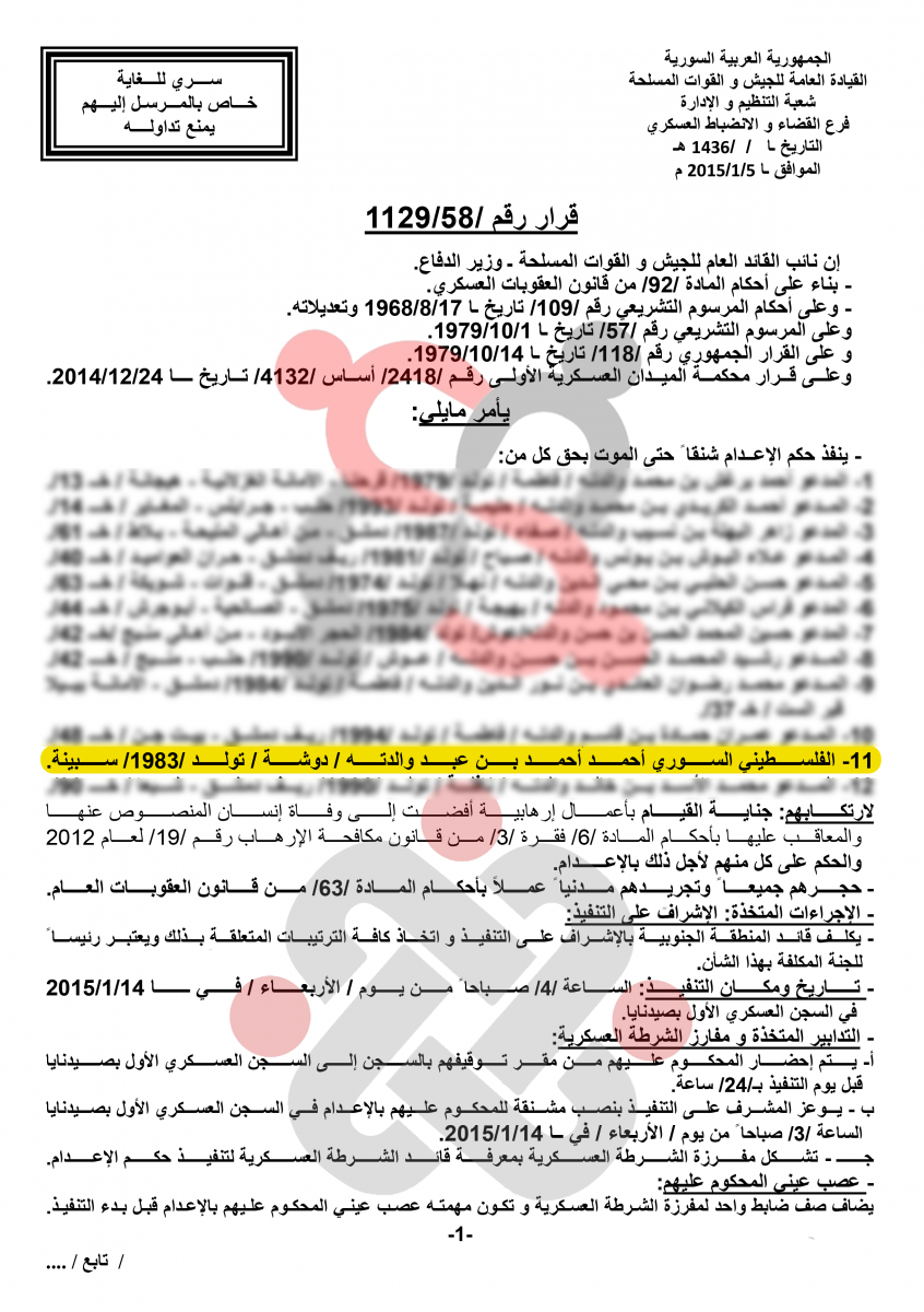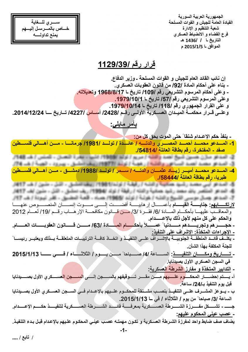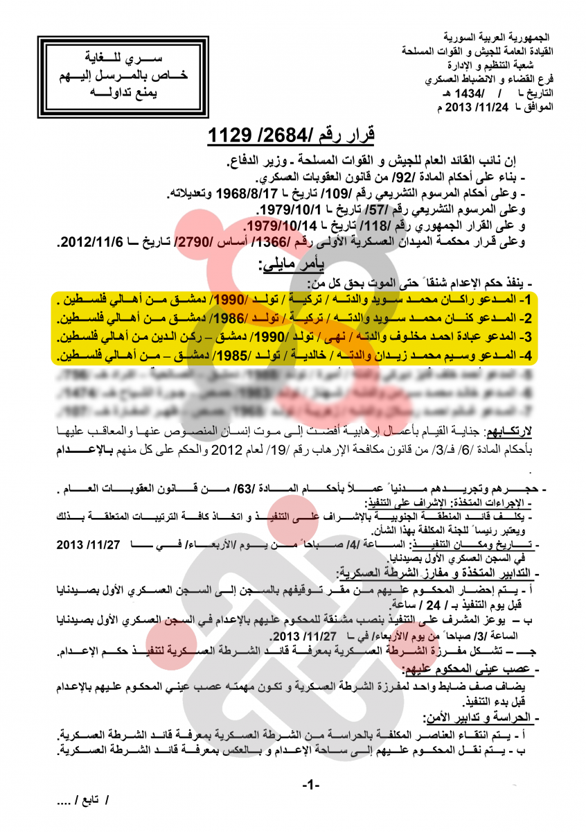 وأظهرت الوثائق، المستمدة من أرشيف الثورة السورية، أسماء الضحايا الذين أُعدموا دون محاكمات عادلة أو إخطار لعائلاتهم، وهم: