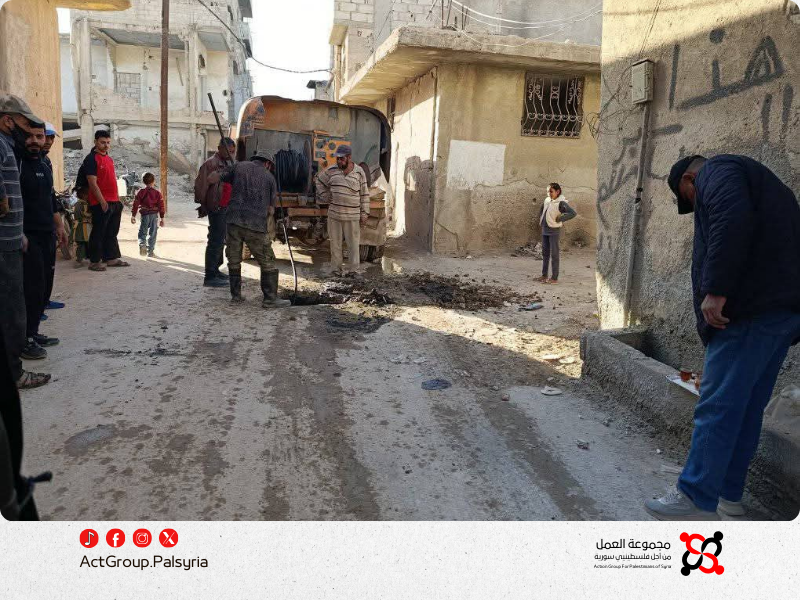 كما باشرت البلدية بتنظيف نقاط الصرف الصحي في شارع سيدنا يعقوب جنوب المخيم، منهيةً بذلك معاناة الأهالي مع تجمع المياه الآسنة التي استمرت لسنوات نتيجة غياب المعالجة من البلديات السابقة.