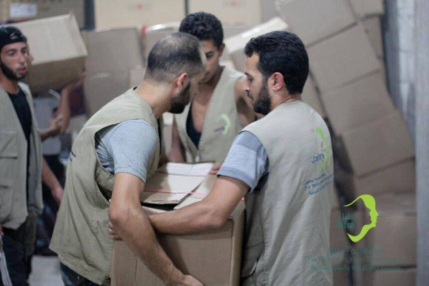 أدخلت مؤسسة جفرا يوم أمس دفعة جديدة من المساعدات الإنسانية ضمن حملتها من_أجل_اليرموك 6 والتي سيتم توزيعها على أبناء مخيم اليرموك النازحين إلى بلدات ” يلدا، ببيلا، بيت سحم ” وتضمنت المساعدات سللاً غذائية وصحية بالإضافة إلى حبوب لتعقيم المياه .