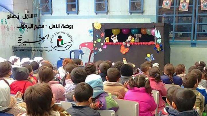 أقامت هيئة فلسطين الخيرية نشاطاً ترفيهياً  للأطفال المحاصرين داخل مخيم اليرموك للاجئين الفلسطينيين جنوب دمشق، النشاط الذي أقيم في روضة الروضة الوحيدة العاملة داخل المخيم الأمل تخلله عرض مسرحي للعرائس و غناء مع الأطفال و تكريم لأطفال الروضة البالغ عددهم 250 طفلأ.