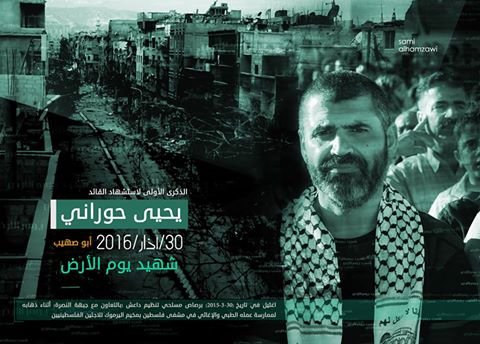 عام مضى على اغتيال الناشط الإغاثي “يحيى عبد الله حوراني”، المكنى أبو صهيب وأحد قادة حركة “حماس” في مخيم اليرموك جنوب العاصمة السورية دمشق، حيث أطلق مجهولون النار عليه يوم 30/ آذار/ 2015، بالقرب من فروج التاج، أثناء توجهه إلى عمله في مشفى فلسطين، ما أدى إلى إصابته بالرأس، حيث تم نقله للعناية المركزة في مشفى فلسطين وهو في حالة خطرة ، الأمر الذي استدعى لنقله إلى مشفى خارج المخيم لتلقي العلاج، إلا أن يد الموت كانت أسرع، فمات على الطريق.