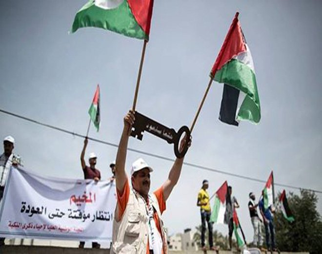 رغم ما تعرضوا له من قصف بالقذائف والبراميل المتفجرة، رغم حصارهم في مخيماتهم وموتهم غرقاً، رغم القنص والتوترات الأمنية وتشردهم عن منازلهم أهالي مخيمات اليرموك و خان الشيح وخان دنون و العائدين بحمص و حماة الذكرى الـ 68 لنكبتهم، حيث نظمت هيئة فلسطين الخيرية وبرعاية حملة انتماء حفل تكريم للطلاب المتفوقين بمدرسة القدس البديلة النازحين من مخيم اليرموك إلى بلدات يلدا وببيلا وبيت سحم، فيما جابت شوارع مخيم خان دنون بريف دمشق مسيرة صامتة رفعت فيها أعلام فلسطين وعدد من اللافتات التي تؤكد تمسك اللاجئين الفلسطينيين بحقهم بالعودة إلى أراضيهم حيث جابت المسيرة شوارع المخيم.