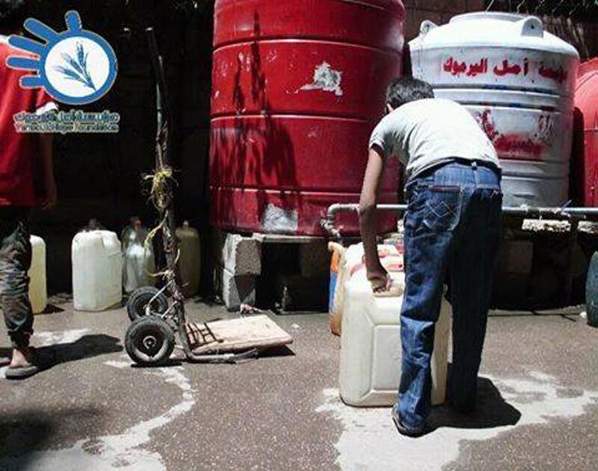 الجدير بالتنوية أن أبناء مخيم اليرموك يعانون من أزمة مياه متصاعدة في تأمين المياه منذ قطعها من قبل النظام السوري عن جميع أرجاء المخيم يوم 9/نيسان – ابريل / 2016، وكذلك بسبب استمرار الاشتباكات بين تنظيمي “داعش” و”النصرة” حيث يفرض الطرفان حظراً للتجول على المدنيين القاطنين في مناطق الاشتباك خصوصاً في شارع لوبية وشارع الجاعونة وشارع حيفا وشارع صفورية وشارع (15) وشارع صفد كون هذه المناطق تشهد حالات قنص.