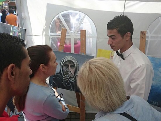 هناك، في بقعة بعيدة عن ضجيج الحرب السورية، وتحديدا في منطقة “سودرتاليا سنتروم” وسط العاصمة السويدية ستوكهولم، أقام الشاب الفلسطيني عروة حمزات ابن مخيم اليرموك، معرضه الأول للرسوم تحت اسم “روح الألوان”.