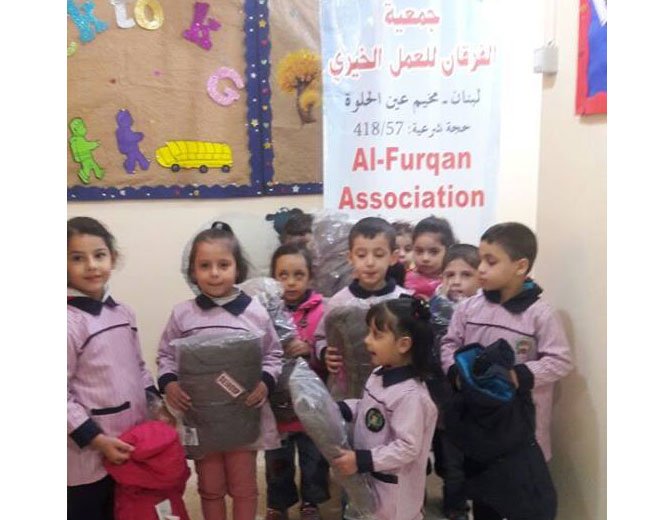 وزعت جمعية الفرقان للعمل الخيري اليوم سترات شتوية على عدد من أطفال فلسطينيي سورية في روضة السنابل بمخيم عين الحلوةبمدينة صيدا جنوبلبنان.