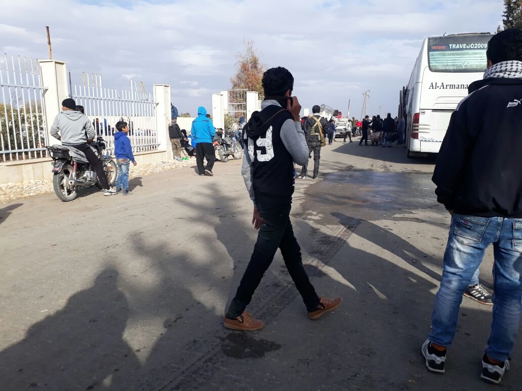 المئات من المدنيين والناشطين الإغاثيين وعوائلهم من أبناء مخيم خان الشيح يبدأون الرحيل نحو إدلب