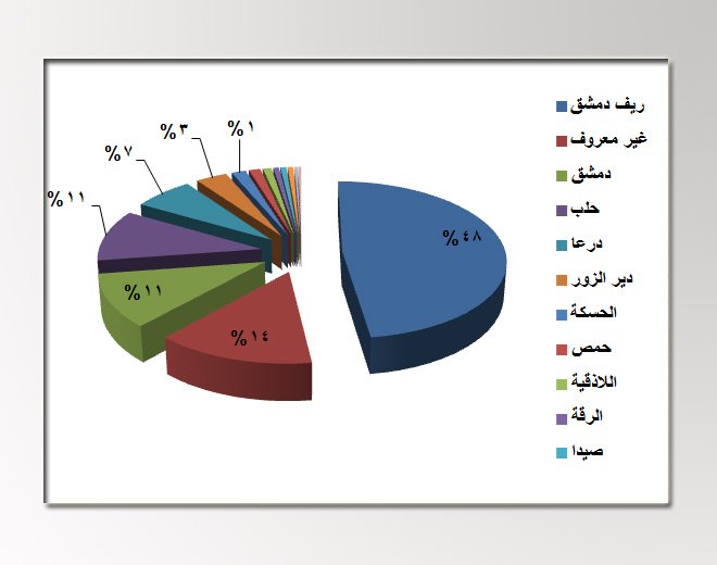 وأشارت مجموعة العمل إلى أن الضحايا الفلسطينيين الذين قضوا خلال عام 2016 المنصرم توزعوا حسب المكان على النحو التالي: في ريف دمشق قضى (149)لاجئاً، و(43) في أماكن متفرقة، فيما قتل في دمشق (34)، وفي حلب (33)، و(21) شخصاً في درعا، إضافة إلى (11) توفوا في دير الزور، في حين قضى (5) في الحسكة، و(4) آخرين في حمص، و(3) أشخاص في اللاذقية، ولاجئان في الرقة، وآخران في إدلب، ، ولاجئ في القنيطرة، و(3) توفوا في لبنان.