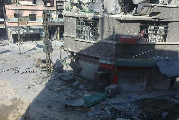 قالت مصادر محلية في مخيم اليرموك المحاصر أن عدداً من الأبنية تدمرت يوم أمس إثر استهداف قوات النظام السوري الأحياء السكنية في شارع فلسطين بالصواريخ.