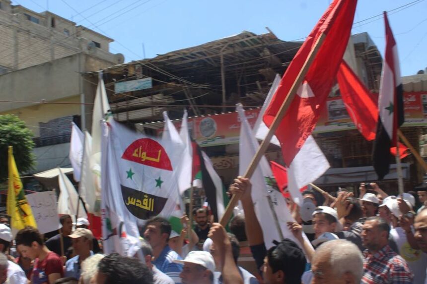 نظم “لواء القدس” المحسوب على النظام السوري، يوم أمس، مسيرة حاشدة جابت شوارع مخيم النيرب للاجئين الفلسطينيين في حلب، وذلك بمناسبة يوم القدس العالمي.