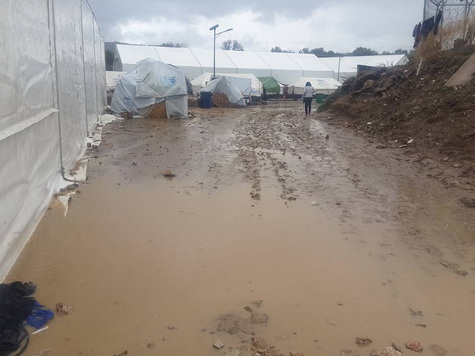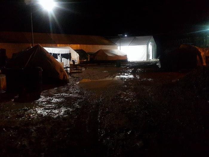 ففي مخيم خيوس، ومخيم موريا على جزيرة ليسفوس متليني، ومخيم ساموس على جزيرة ساموس، يعيش اللاجئون ليالي صعبة بفعل الأمطار الشديدة والتي أغرقت خيم اللاجئين بالمطر والطين.
