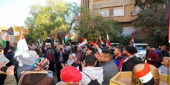 مئات الفلسطينيين والسوريين يعتصمون في دمشق تنديداً بقرار ترامب