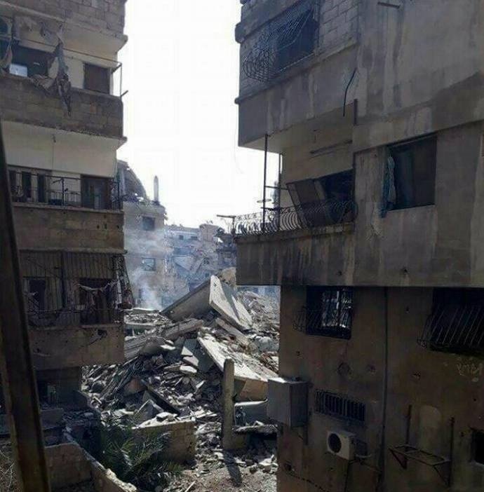 إلى ذلك تستمر الطائرات الحربية بشن غارتها على المخيم منذ فجر اليوم حيث استهدفت فيها أحياء جنوب دمشق متسببة بدمار كبير في منازل المدنيين.
