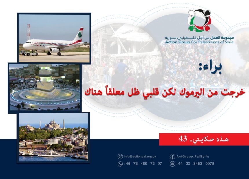 يقول براء: “كنت في الثامنة عشر من عمري عندما انهيت دراستي للثانوية العامة لكن لم يحالفني الحظ، فقررت أن استمر بمساعدة أبي في محلنا إلى أن أعاود المحاولة في السنة المقبلة، لكن لم أكن أعلم أن السنة القادمة ستنقلب فيها جميع الموازين وسأكون بعيداً عن مخيمي ووطني الصغير”.