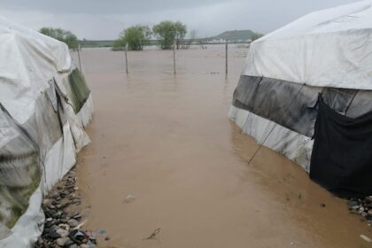 الأمطار تغرق خيام المهجرين الفلسطينيين في الشمال السوري