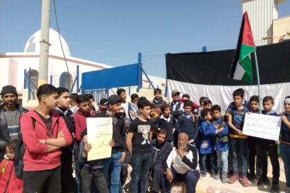 جنوب سوريا.. وقفة احتجاجية أمام مكتب الأونروا في بلدة المزيريب