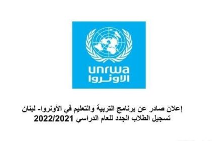 لبنان. الأونروا تعلن عن تسجيل الطلاب الجدد