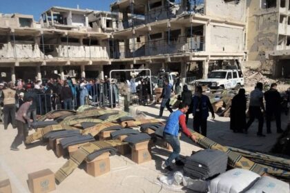 توزيع مساعدات غذائية على العائلات الفلسطينية السورية في مدينة العثمانية