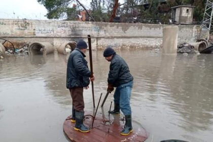 الأمطار تغمر شوارع وأزقة مخيم سبينة وتحولها إلى مستنقعات