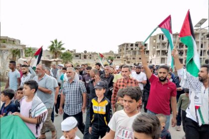 مظاهرة في مخيم درعا للاجئين الفلسطينيين تضامناً مع غزة