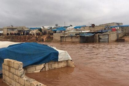 عاصفة مطرية تقتلع خيم اللاجئين في الشمال السوري
