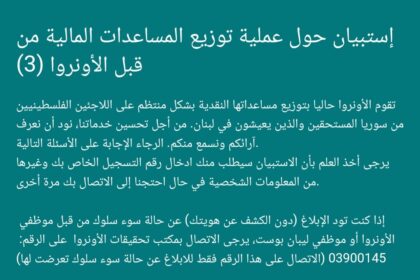 الأونروا ترسل استبياناً لفلسطينيي سوريا في لبنان بهدف التقييم