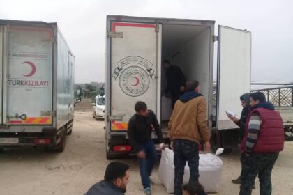 توزيع مادة المازوت على العائلات الفلسطينية المهجرة إلى الشمال السوري