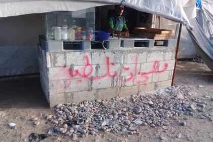 شاهد: لاجئ فلسطيني يتحدى التهجير والمعاناة وينشئ محل لبيع المعجنات في مخيم دير بلوط شمال سورية.