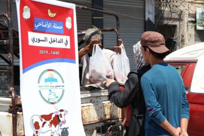 توزيع لحوم الأضاحي على الأسر الفلسطينية في الشمال السوري