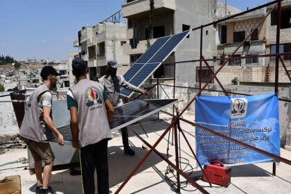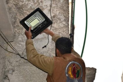 تركيب أجهزة إنارة بالطاقة الشمسية في مخيمي حندرات والنيرب بحلب