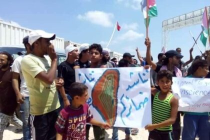 احتجاج في مخيم دير بلوط على قرار ترامب بخصوص الجولان