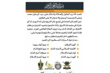 المعارضة السورية تُعلن خلو مخيم خان الشيح من أي مظاهر مسلحة وعدم وجود مقرات لها داخله